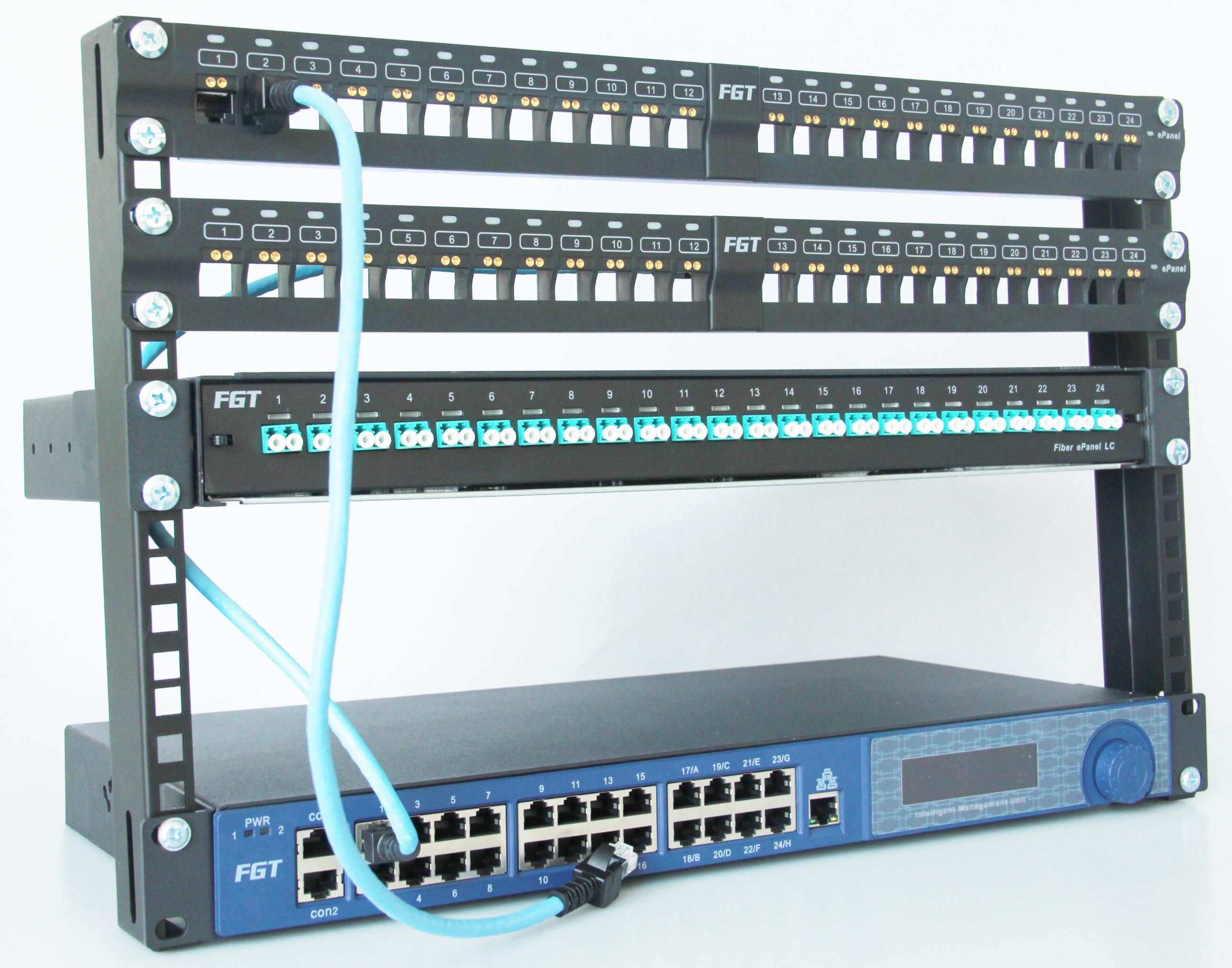 電子配線架,英文為E-panel或者Patch Panel,又稱“綜合布線管理系統(tǒng)”或者“智能布線管理系統(tǒng)”等,其基本功能是: 1.引導(dǎo)跳線,其中包括用LED燈引導(dǎo)的,顯示屏文字引導(dǎo)以及聲音和機(jī)柜頂燈引導(dǎo)等方式; 2.實(shí)時(shí)記錄跳線操作,形成日志文檔; 3.以數(shù)據(jù)庫(kù)方式保存所有鏈路信息; 4.以Web方式遠(yuǎn)程登陸系統(tǒng)。
