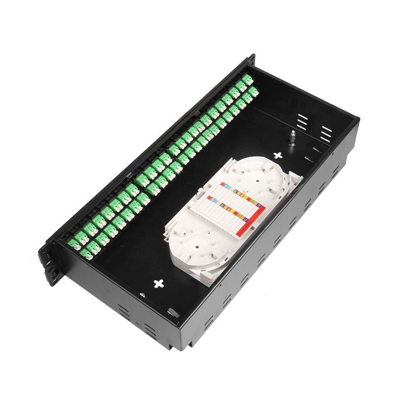 19寸機架式2U 48口光纖盒、帶標簽條、可配置ST\SC\FC專用適配器、LC適配器最大96端口
